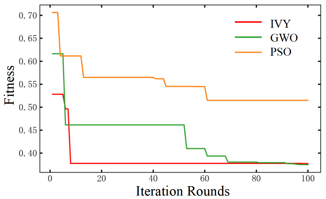 After 100 iterations, the variation curves of the optimization fitness values for the three algorithms are shown in Fig. 15. Analysis of the curves reveals the following: Since a lower fitness value indicates a better trajectory, the final fitness value of the IVY algorithm is approximately 26% lower than that of the GWO algorithm, meaning its fitness level is improved by approximately 26%, demonstrating superior optimization accuracy. Although the final fitness value of IVY is close to that of the PSO algorithm, its convergence speed is approximately 88% faster, confirming its superiority and feasibility for applications in this field.