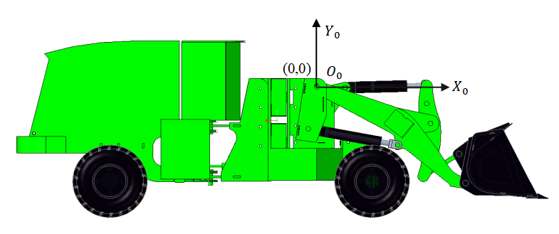 Assume the coordinates of the bucket endpoint in the initial coordinate system are (,,0), then: